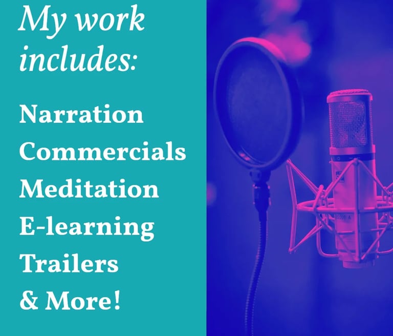 Professional voice over actress with a fully equipped studio, delivering tailored recordings for commercials, audiobooks, eLearning, and more. Listen to my demos and read client testimonials.