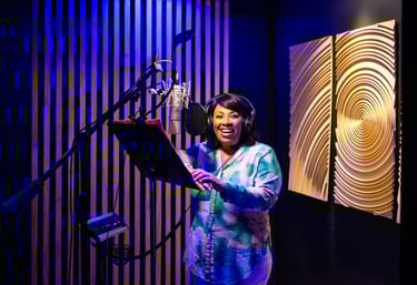 Professional voice over actress with a fully equipped studio, delivering tailored recordings for various projects and clients.